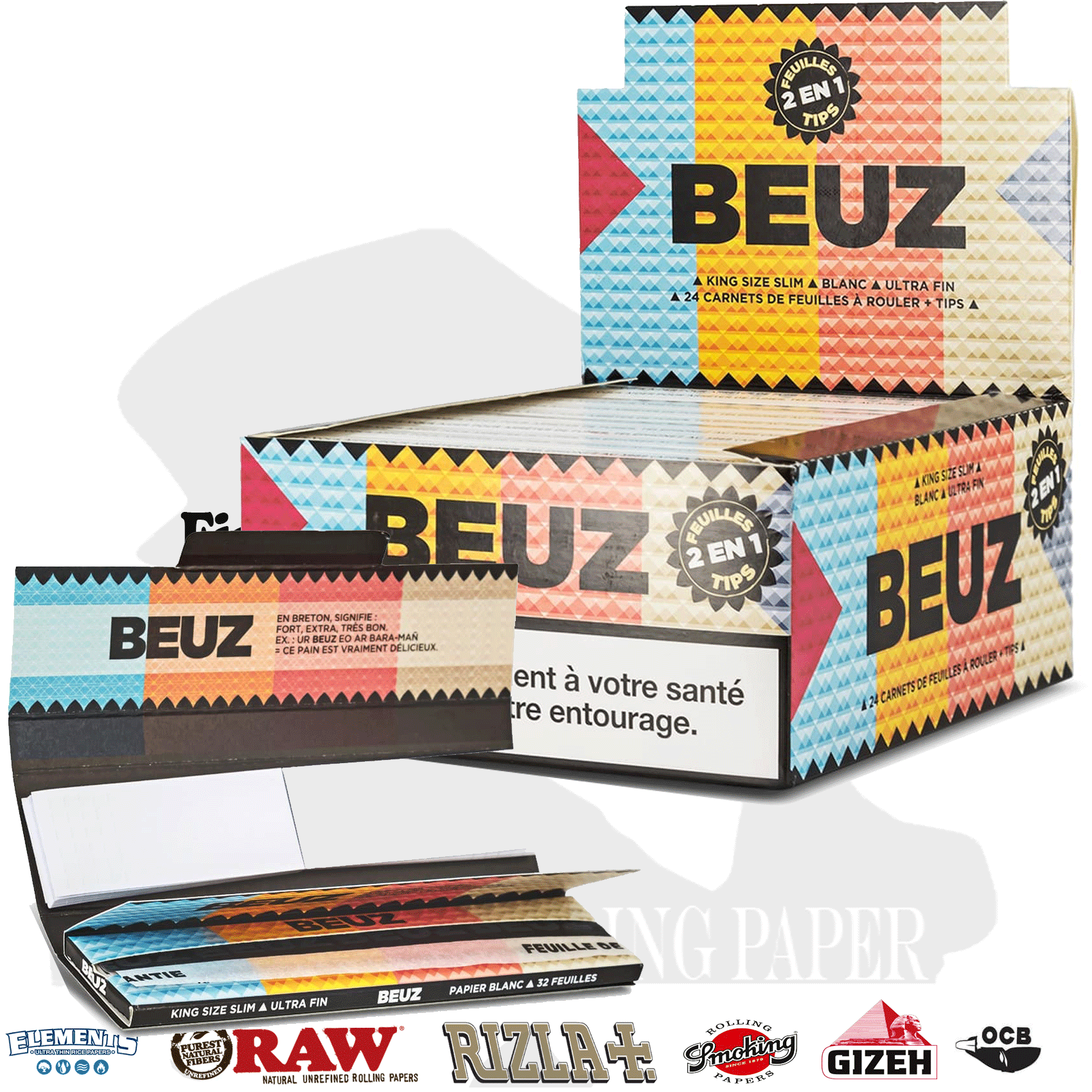 Beuz Ciel Cartine King Size Slim con filtri in carta sono la scelta ideale per chi cerca una soluzione pratica, naturale e di qualità nel mondo del rolling. Ogni confezione include 24 libretti combinati: cartine + tips.