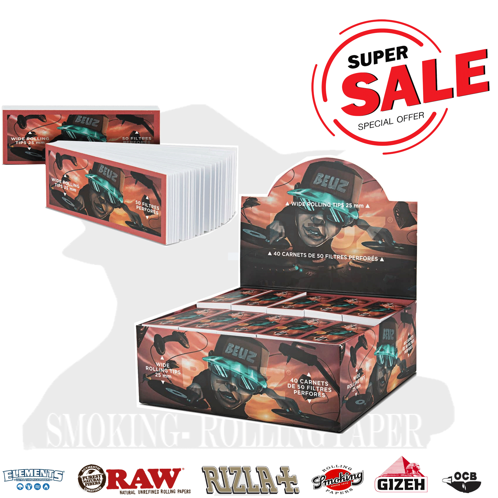 Ogni confezione contiene 40 blocchetti di filtri pretagliati e perforati, facilitando così il piegamento e la preparazione della sigaretta. Il formato King Size Wide assicura una dimensione perfetta per cartine lunghe Slim o Regular.