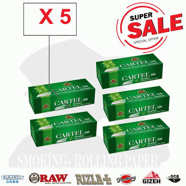 Le sigarette vuote Cartel Menthol 200 sono arricchite dal gradevole sapore di menta e sono le preferite dai fumatori che desiderano abbinare il loro tabacco preferito alla freschezza e all’aroma del mentolo.