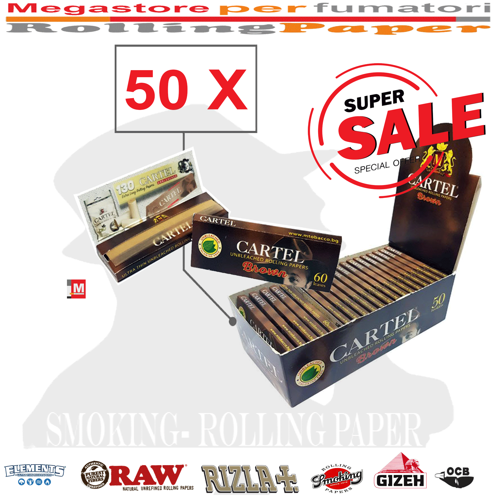 Cartine Cartel Brown Unbleached – Marrone Singole – Scatola da 50 Libretti