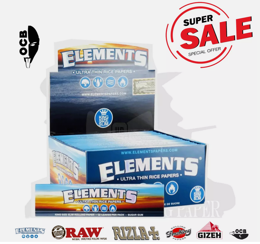Cartine Elements Blu Lunghe King Size Slim Sigarette Blue Scatola Da 50 Libretti
