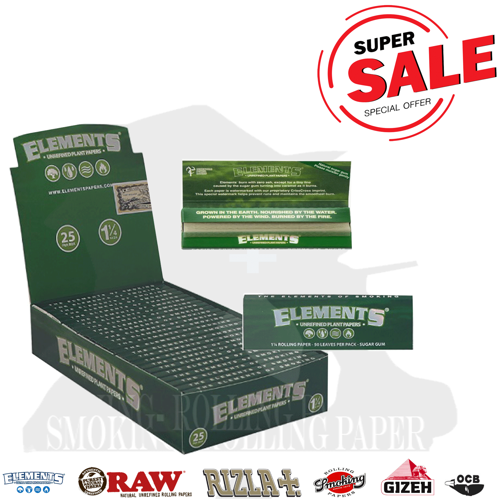 Cartine Elements Verdi Unrefined 1¼ – Scatola da 25 Libretti