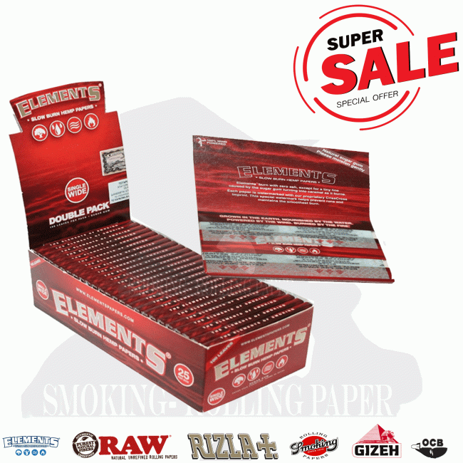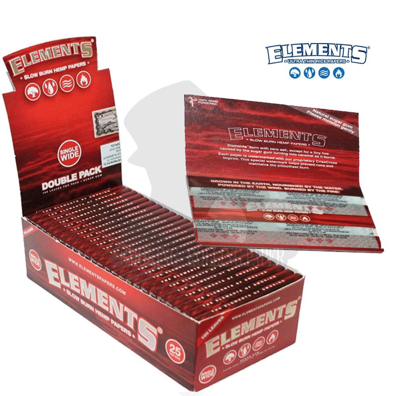 Cartine Elements Red Doppie Corte in Canapa – Scatola da 25 Libretti