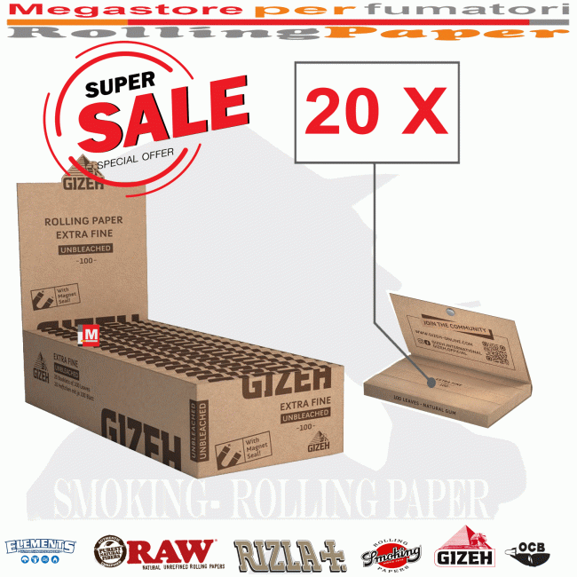Cartine Gizeh Unbleached Extra Fine – Carta Naturale – 20 Libretti
