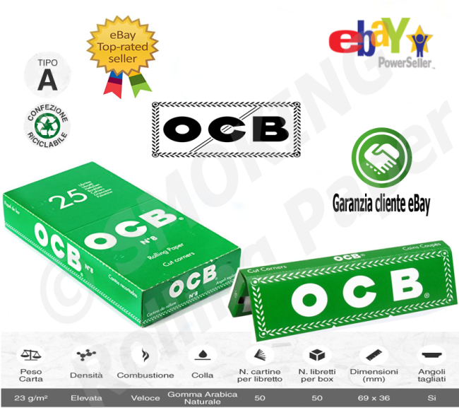 Cartine OCB Verde Corte Nº 8 – Angoli Tagliati – Scatola da 25 Libretti