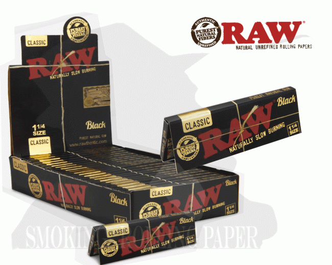 Cartine RAW Black Classic Corte – 1¼ Medium – Scatola da 24 Libretti