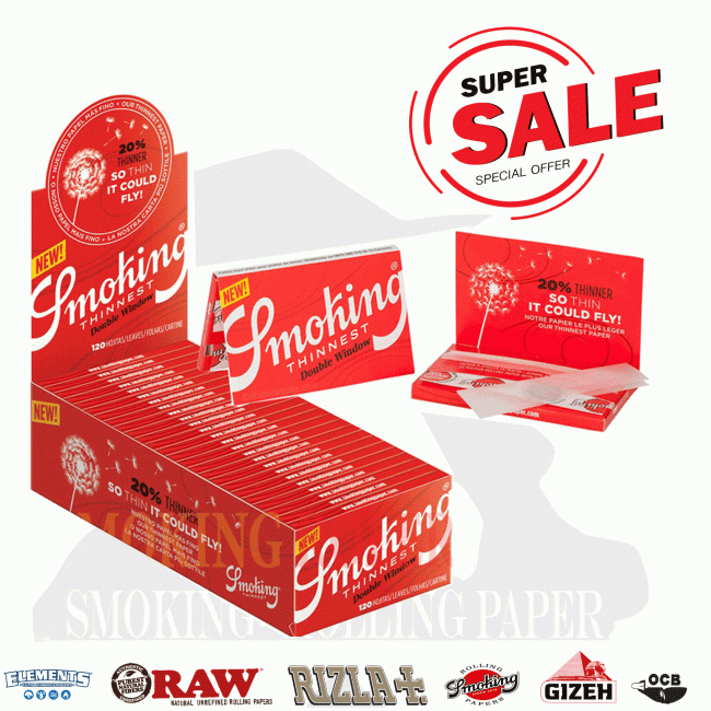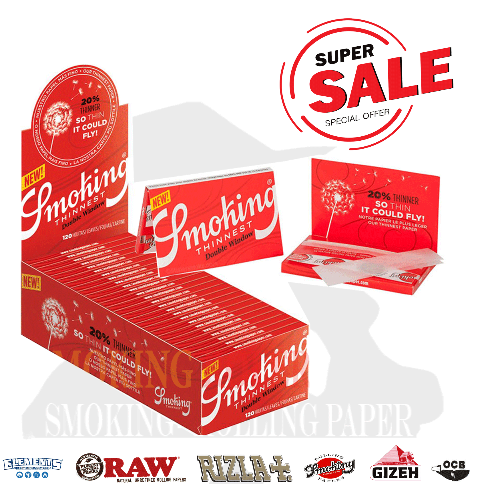 Le Smoking Thinnest Doppie Corte con finestra doppia sono progettate per chi cerca prestazioni elevate e massima leggerezza. Ogni scatola contiene 25 libretti doppi, ciascuno con 120 fogli ultra sottili.