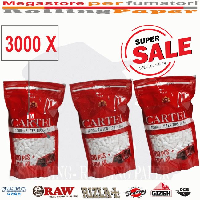 Filtri Cartel Classic Size Regular 8mm Bustine 3000 Filtre