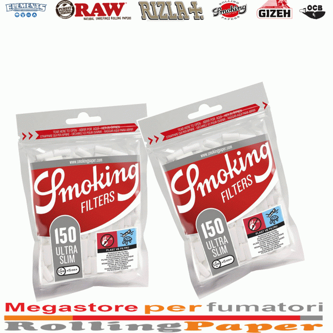 Smoking Filtri Ultra Slim 5,3mm Lungo 15mm – Bustina da 150 Filtri