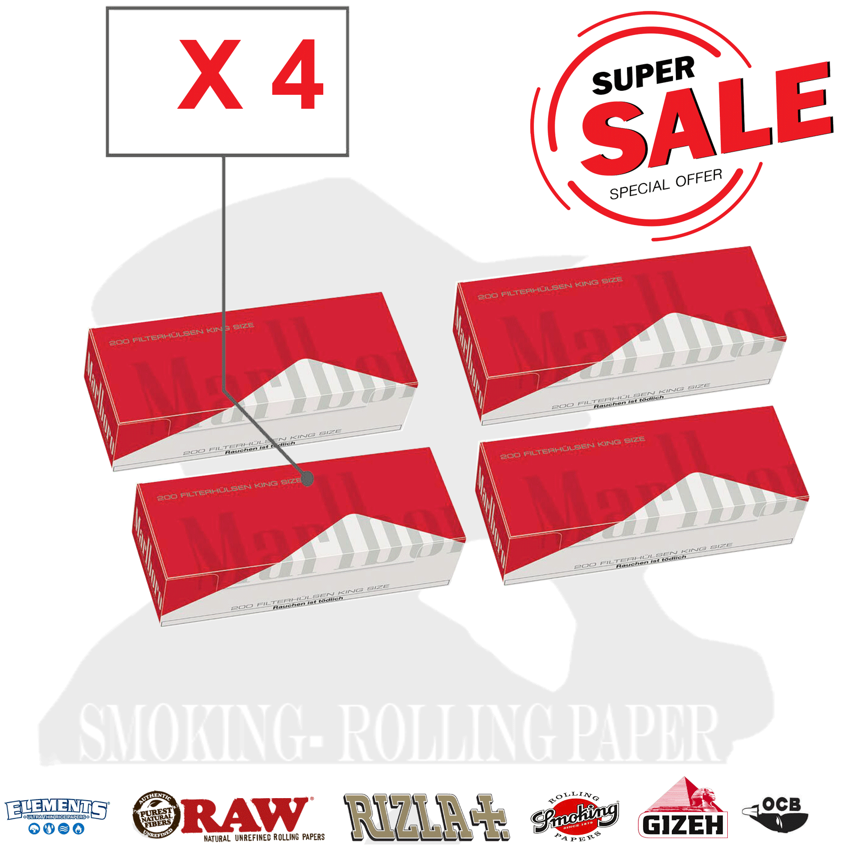 Marlboro Red Tubetti Filtro Tubes 4 x Box Da 200 Sigarette Vuote