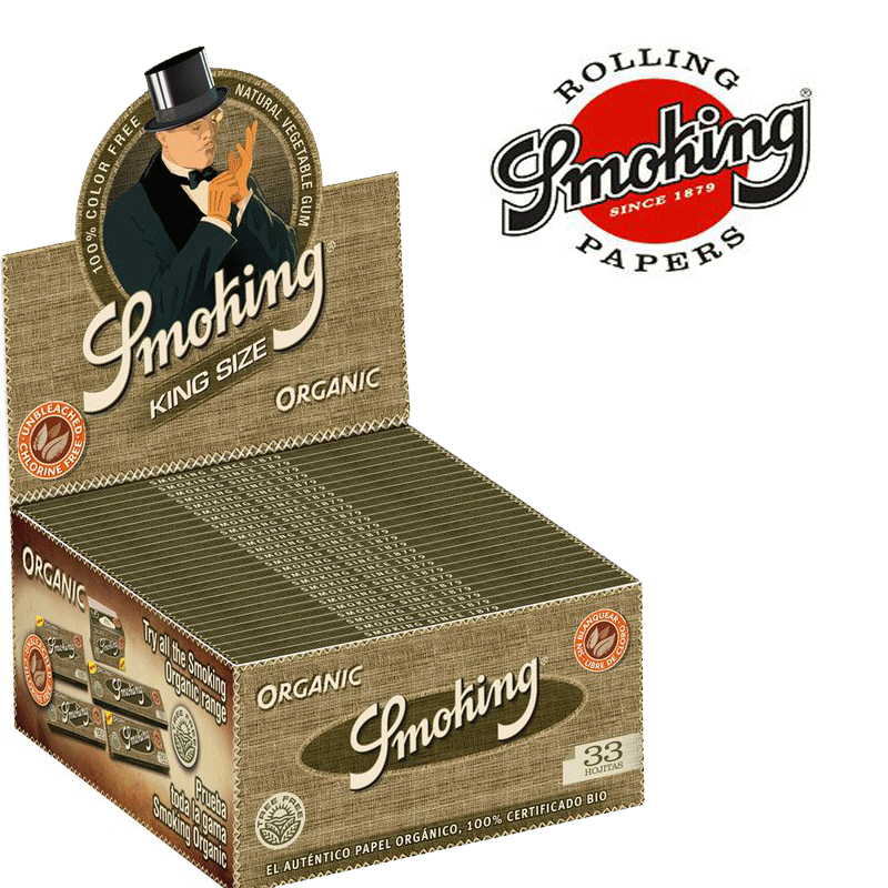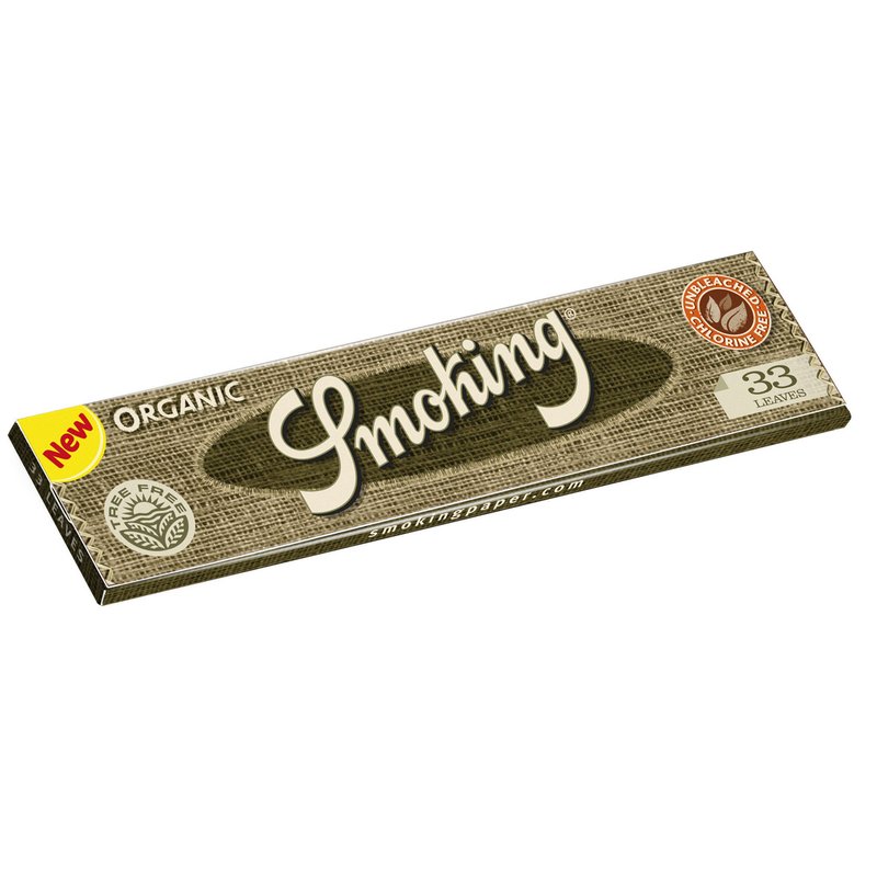 Tutte le cartine Smoking Organic sono costituite da fibre di canapa che sono al 100% di certificazione biologica e coltivate con metodo biologico. La canapa é stata coltivata senza l’uso di pesticidi, erbicidi e fertilizzanti artificiali. Il sigillo TREE FREE certifica, che nessun albero è stato abbattutoi per produrre i cartine Smoking Organic.